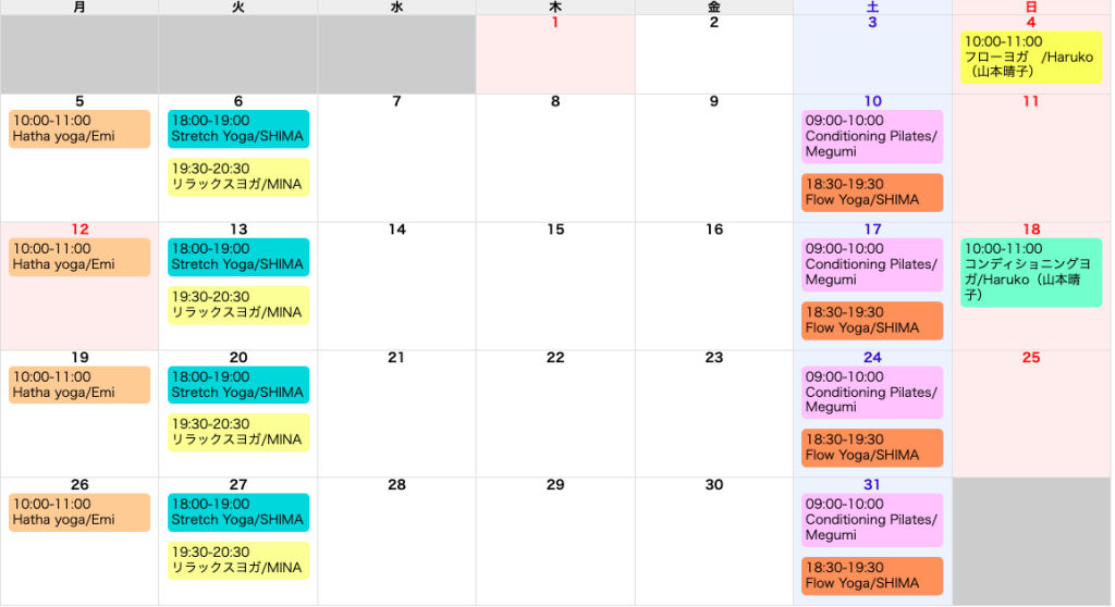 【定休日】火曜日・日曜日・祝日 (YOGA PILATES 開講)